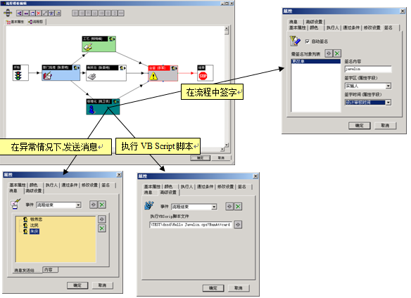 系統(tǒng)除了提供用戶可定制的流程模板功能外,在流程的每個(gè)步驟中都可以增加VB script解釋、即時(shí)消息觸發(fā)、簽名等功能。這些功能在我們企業(yè)的實(shí)際應(yīng)用過程中有非常大的價(jià)值.在Javelin中,當(dāng)一個(gè)審核流程完成(通過)后,系統(tǒng)會(huì)自動(dòng)對(duì)被審核數(shù)據(jù)(如圖紙/工藝卡)進(jìn)行數(shù)字簽名,并且發(fā)出相應(yīng)的通知.