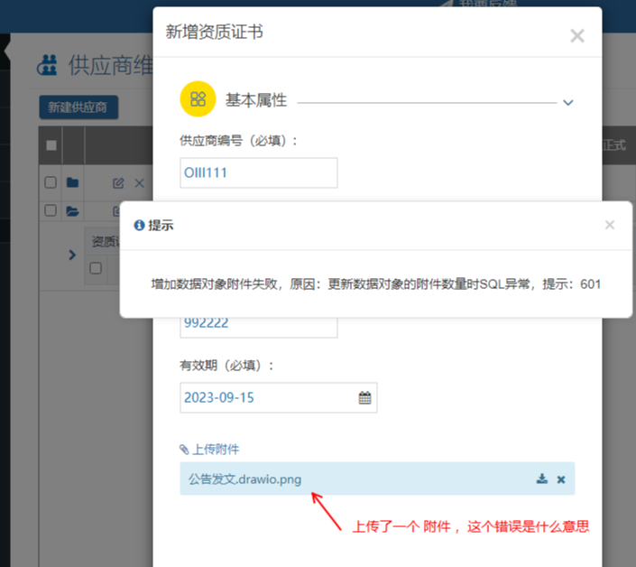 文件上傳:更新數據對象的附件數量時SQL異常,提示:601 2023/09/06 分類:產品中心 問題中心 767 問題描述:(20230906 發現) 若OIDateWebs 升級到 20230614 之后版本 ,而mobox數據對象是之前創建的,并且帶附件。存在OIDateWebs 升級后造成附件上傳異常問題 解決方法: 步驟1)下載OIDataWebS_R_20230905.zip 步驟2)更新OIDataWebS服務 步驟3)將數據對象里面的附件選擇先去掉 ,之后 ,重新添加附件選項 確定后,重新進入 ,將 附件 選項 重新 打上 標簽:問題 上一篇: 低代碼腳本開發-人員選擇 下一篇: 數據庫還原成功后(狀態為:關閉,正常),服務無法鏈接