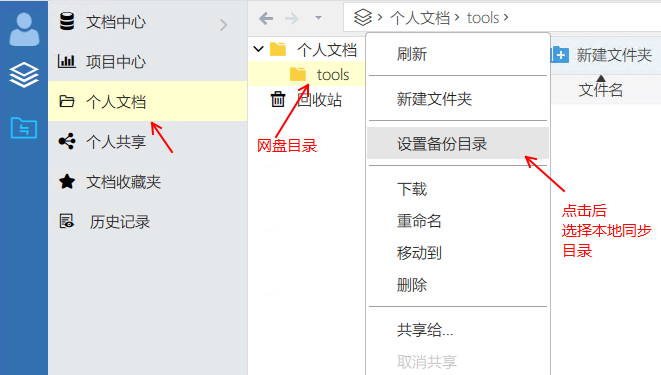 3)設(shè)置這個網(wǎng)盤目錄(tools)與本機電腦上指定目錄進行文件同步(本機如:c:\tools)