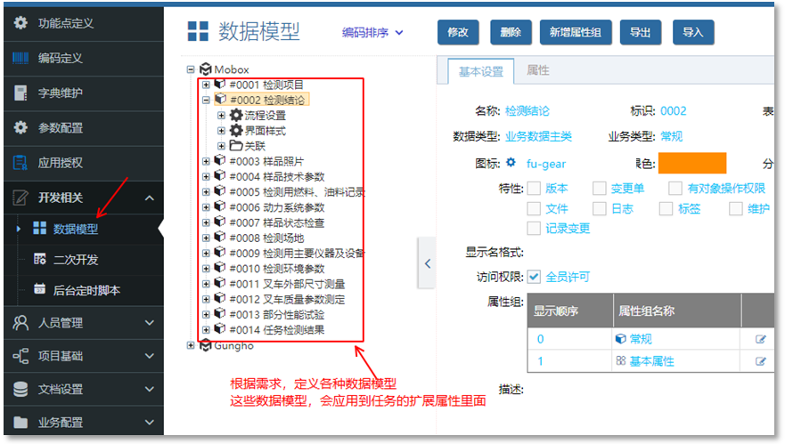 - 數據模型定義 (用于任務擴展屬性的定義)