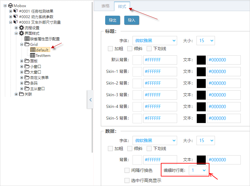 Mobox 3000功能點表格直接編輯的實現 2024/04/27 分類:產品中心 產品手冊 實施方案 686 3000 功能,可以點擊某一條記錄后,對這條記錄進行修改。但有的時候用戶這個數據是一個大表,希望能在全屏的模式下進行表格編輯,這樣會比較快 為此,系統可以實現表格直接輸入的功能。 實現方式如下 1)3000 功能點,綁定某數據類的grid 2)這個grid樣式中,需要定義,那些字段可以編輯 3)增加頁面按鈕,功能綁定 GridEdit 4)在輸入環節,點擊 頁面按鈕(輸入)就能進行表格直接輸入 5)格子編輯時的高度,可以在樣式里面定義 標簽:手冊 上一篇: Mobox 3000功能點頁面按鈕隱藏的lua實現方法 下一篇: 怎樣將ASP.NET Core Web API 部署到IIS